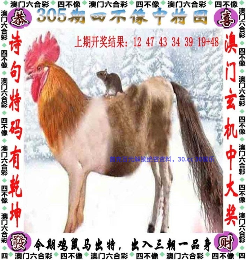 | 305期六肖 | 鸡蛇猪鼠狗马 | 開:鼠42 |