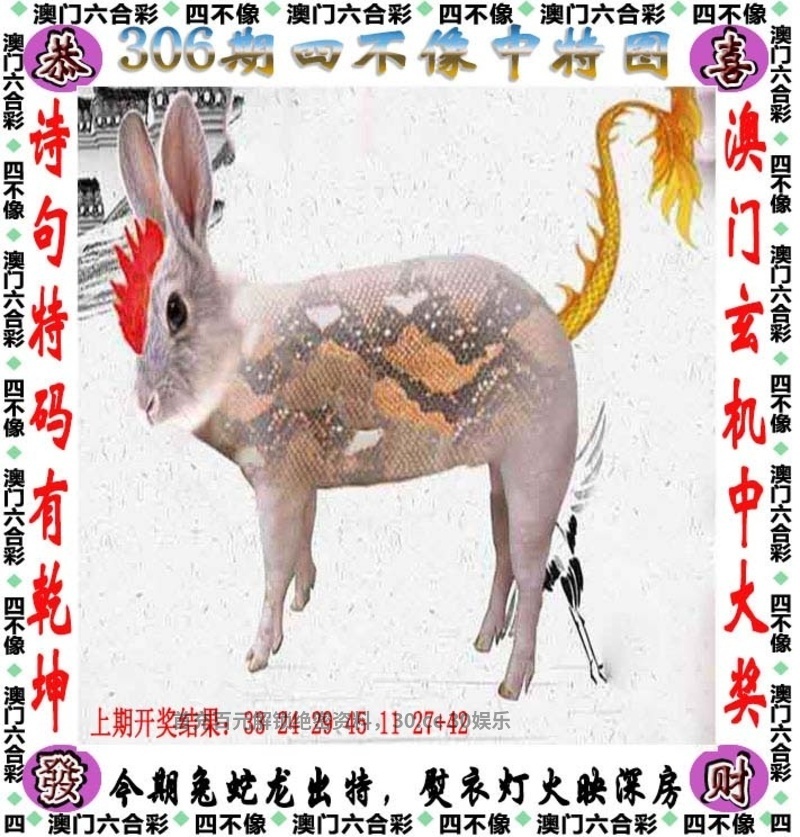 | 308期六肖 | 龙蛇鸡猪兔猴 | 開:兔39 |